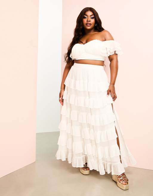 ASOS LUXE Curve Set aus gerafftem Strand Bustier mit gestuften transparenten Armeln und Rock in WeiB ASOS Very well made.