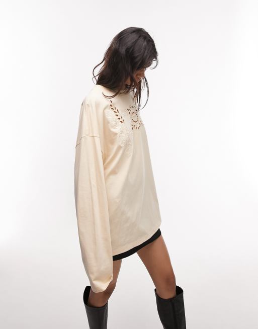 Topshop Langarmliges Skater Shirt in neutralem Farbton mit Stickerei ASOS Very well made.